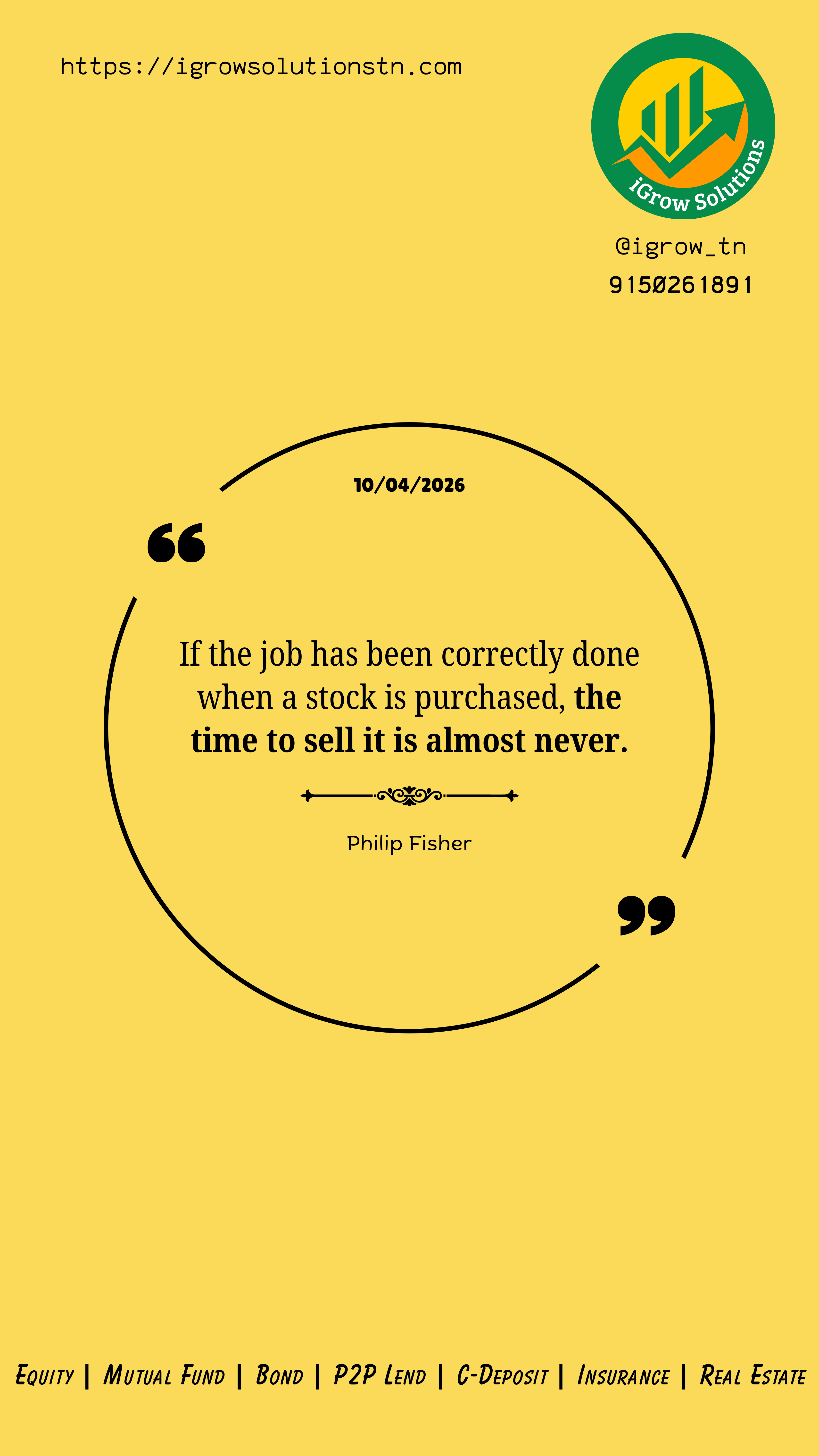 If the job has been correctly done when a stock is purchased, the time to sell it is almost never.